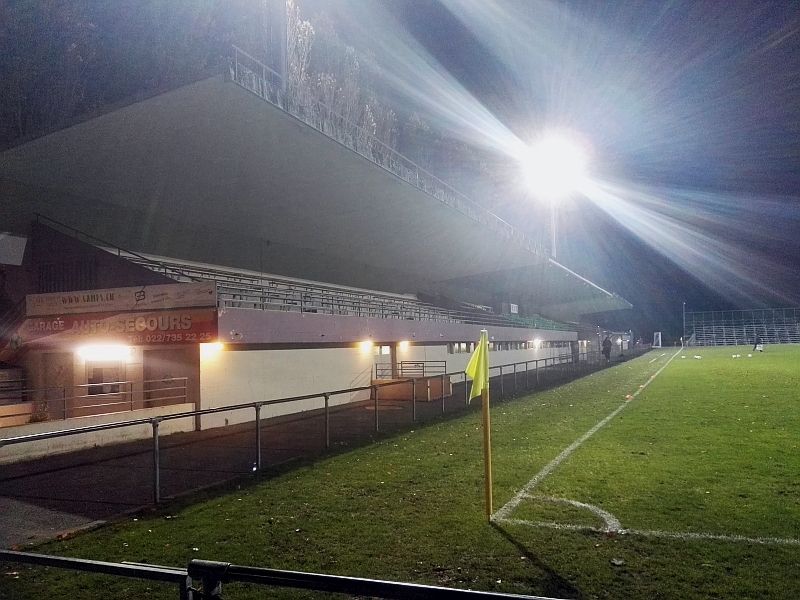 (Stade des Trois-Chênes, 46.191817, 6.190689) Nach dem Kältetest im Stade de la Fontenette stellten wir uns auf eine weitere Runde frieren ein, aber wir konnten uns im Kiosk verschanzen der schön beheizt war 😉 . Das Stadion wird eigentlich durch den Club CS Chênois genutzt welcher sogar schon einmal in der höchsten Schweizer Liga (Nationalliga A) spielte. Wir allerdings verfolgten das Erstliga Spiel der Frauen zwischen Genf und dem FC Basel. Für mich spielten die Genferinnen einen Tick besser, aber Basel machte die Tore. Nach Abpfiff ging es nach Frankreich in die Unterkunft.