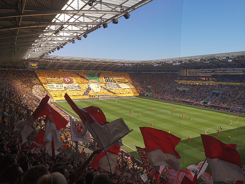 (DDV-Stadion, 51.040841, 13.748044) So, nun das zweite mal diese Wochenende Geißböcke schauen nach dem ersten Spiel in Jena. Das Stadion ist entgegen dem alten Rudolf-Harbig Stadion um Welten besser, was sich auch in der Lautstärke bemerkbarmacht. Für die Dynamos galt es das 1:8 Desaster aus dem Hinspiel wieder gut zu machen – was sie auch taten. 3:0 hieß es am Ende für die Dynamos. Die Kölner vertrauten viel zu sehr auf ihre Qualität und dachten wir werden schon irgendwann ein Tor schießen. Deutlich überschätzt – den Gegner unterschätzt! Nach Abpfiff holte ich meinen Mitfahrer in der Südstadt ab und wir fuhren gen Tschechien wo wir allerdings vor einem leeren Stadion standen, denn Sonntag heißt eben NedÄle und Samstag Sobota (So.) 😂. Wobei ich zu meiner Verteidigung sagen muss das mein Mitfahrer das Spiel rausgesucht hat und ich mich auf ihn verlassen habe! Peinlich war es trotzdem – aber das beste draus machen und wenigstens gut was essen vor Ort!