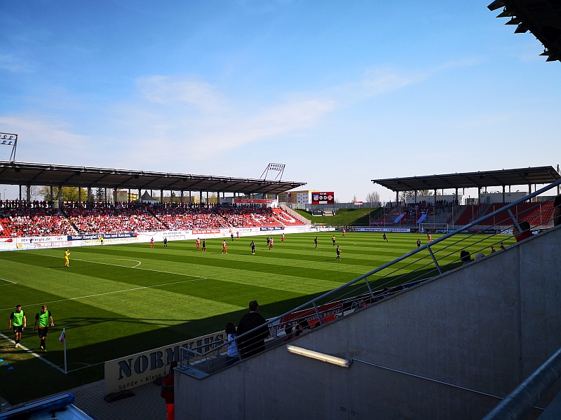 (Stadion an der Rüsternbreite, 51.746818, 11.960284) Nach sieben stündiger Anfahrt kam ich pünktlich zum Spiel. Der Ground gefällt mir und die Mannschaft die ihn bespielt hat eine bewegte Vergangenheit mit zig Umbenennungen. Zu DDR Zeiten trug man den Namen BSG Motor Köthen. Die Betriebssportgemeinschaft spielte immerhin eine Saison in der dritthöchsten Spielklasse (II. DDR-Liga 1962/63). Im Jahr 1964 verpasste man haarscharf und sehr unglücklich nach einem dritten Entscheidungsspiel im Kurt-Wabbel-Stadion gegen Chemie Buna die Aufstiegsspiele zur DDR-Liga (Höchste Liga).