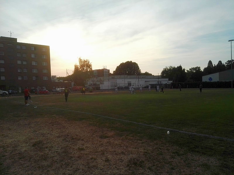 (Bayer Stadion, 51.086264, 6.846301) Der TSV Bayer Dormagen ist der kleine Bruder von Bayer 04 und genauso auch eine Werksclub. Berühmter als die Fußballabteilung ist deren Handballabteilung, die hauptsächlich in der 2. Handballbundesliga spielt. Dort sind sicherlich mehr Zuschauer als heute anwesend, gerade einmal 35 Zuschauer wollten diesen Vergleich in der Bezirksliga Niederrhein sehen. Vier Tore gesehen und Hacken dran.
