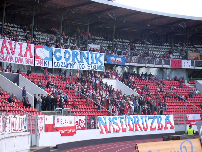 (Evzena Rosickeho, 50.080432, 14.383706) Erstes Spielchen an diesem Tag führte uns ins 1935 eröffnete Evzena Rosickeho, welches damals aber noch Masarykův stadion (Masarykův war tschechoslowakischen Präsident) hieß. Seinen heutigen Namen hat das Stadion vom aus Olmütz stammenden Evžen Rošický, einem Leichtathleten, Sportjournalisten und Widerstandskämpfer gegen die Nazis. Evžen wurde zusammen mit seinem Vater am 25. Juni 1942 in Prag hingerichtet. Salvia spielt seit 2000 hier im Stadion, da ihr eigenes untauglich für die 1 Liga geworden ist. Die 3200 Zuschauer sahen eine recht dominante Slavia Mannschaft die durch zwei Tore von Pavel Fořt zur Halbzeit führte und diese in der 75. Minute auf 3:0 ausbaute. Nach Abpfiff ging es in die Skoda Stadt nach Boleslav.