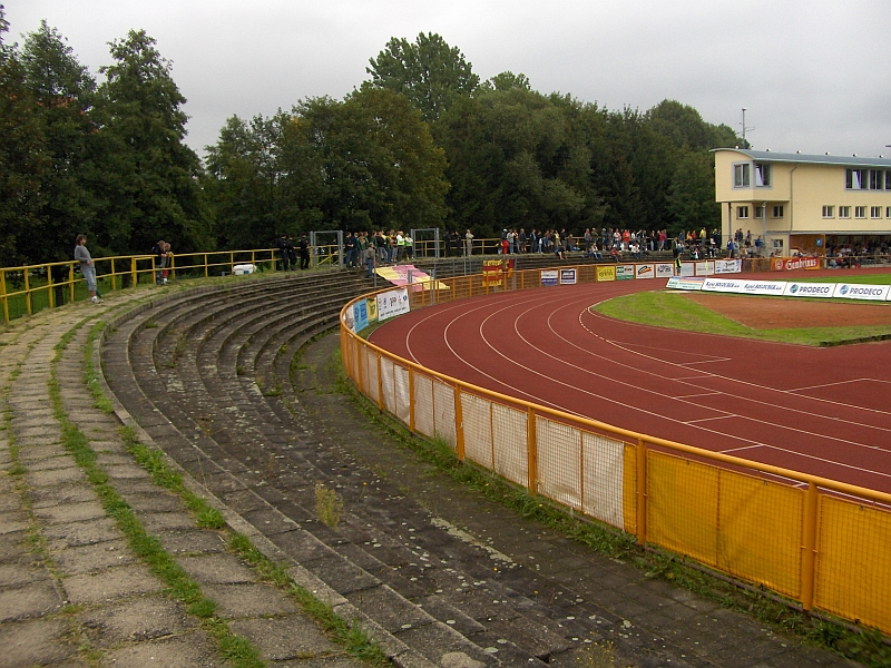(Hriste Ruzovy vrch KV, 50.239327, 12.869657) Vor der Stadtbesichtigung gönnten wir uns dieses Testmatch des FC Slavia Karlovy vary im Lokomotive Stadion.