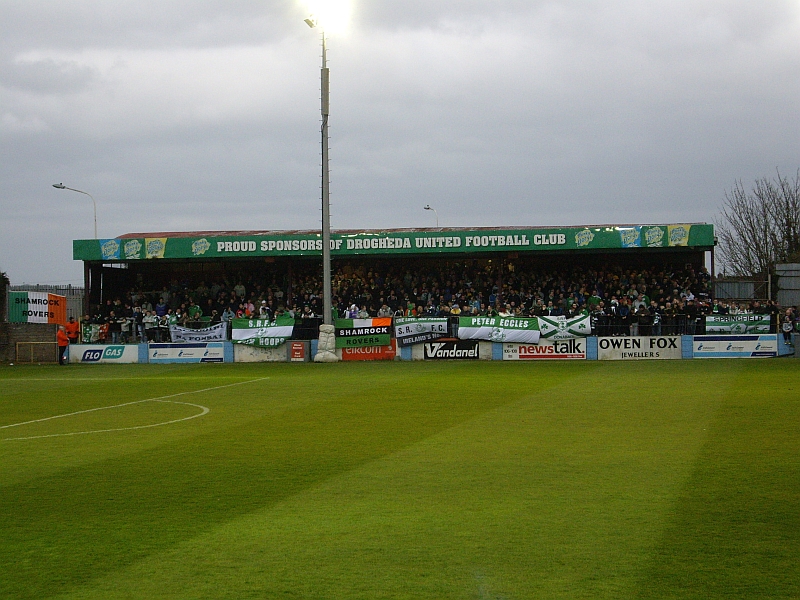 (United Park, 53.723407, -6.357356) Letztes Spiel auf der grünen Insel für dieses Jahr. Die Rovers mit einigen Supportens im Gepäck die gut Stimmung machten. Ihre Mannschaft machten es ihnen gleich, wenn auch sie ersst in der 2ten Hälfte so richtig Gas gaben. Das besondere an Drogheda sind nicht unbedingt das alte Stadion sondern die Freundschaft zum türkischen Club Trabzonspor die ihre Wurzeln in der großen Hungersnot von 1845 hat. Um dem irischen Volk zu helfen schickte der osmanische Sultan Abdulmecid Schiffe voller Lebensmittel aus der Türkei nach Drogheda.